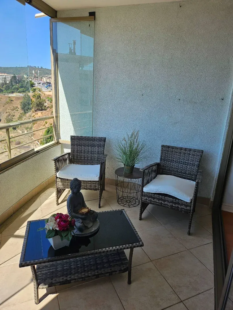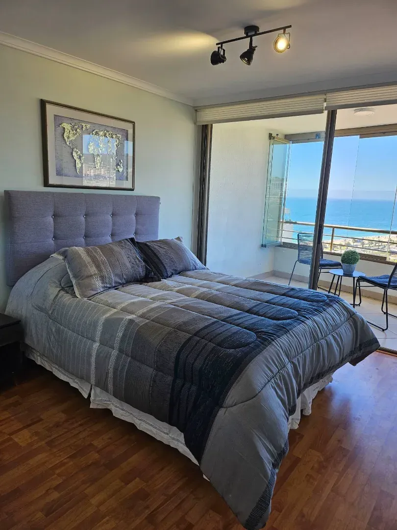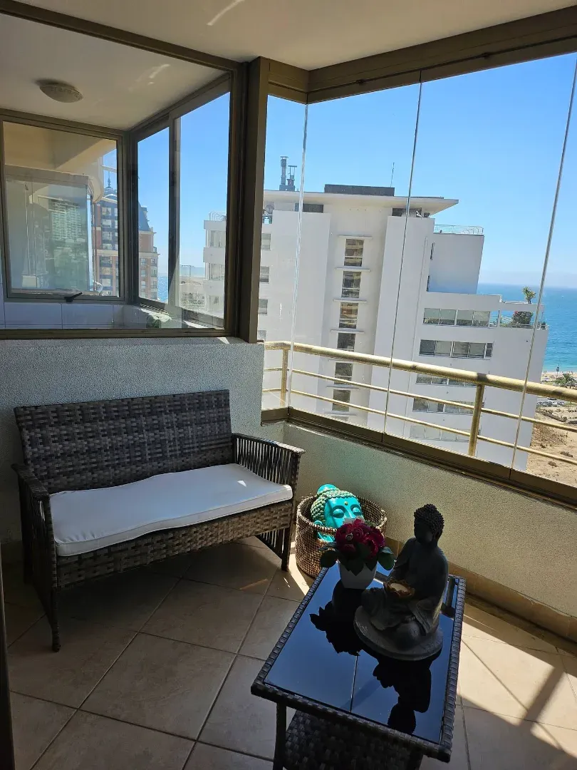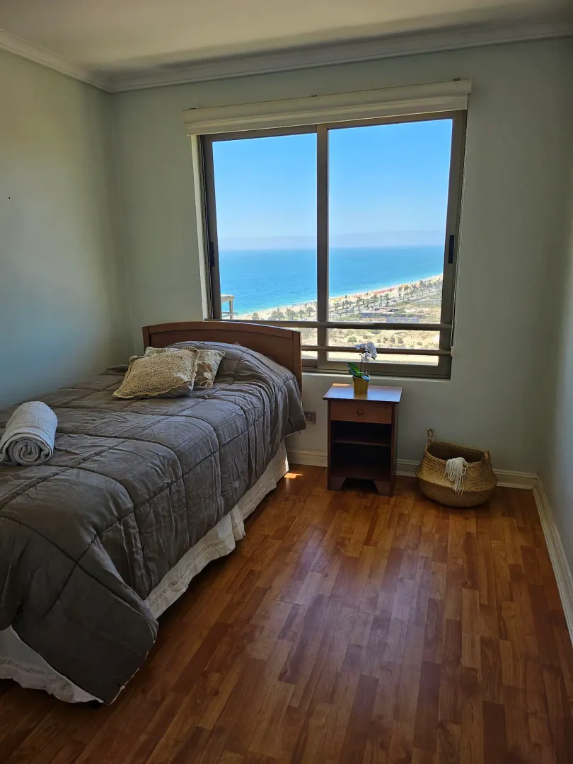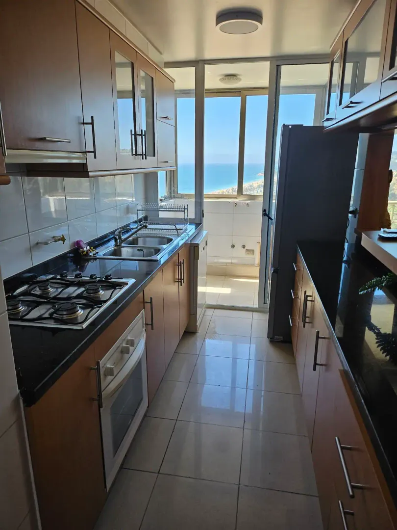 Ce bel appartement avec vue panoramique sur mer propose 2 chambres pour 2 salles de bains. Le bâtiment propose une salle de sport, un terrain de tenis ainsi que 2 piscines intérieurs. Confortable, élégant, à quelques mètres de la plage, du centre commercial, des cliniques, des banques, de toutes sortes de magasins, des cinémas, des supermarchés, des places, des restaurants et bien plus encore dans le meilleur quartier de Viña del Mar. Litteries et serviettes de bains inclus pour toutes les chambres.
