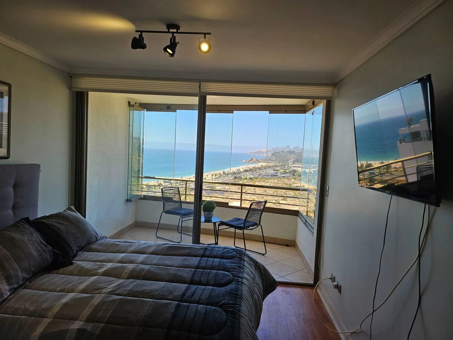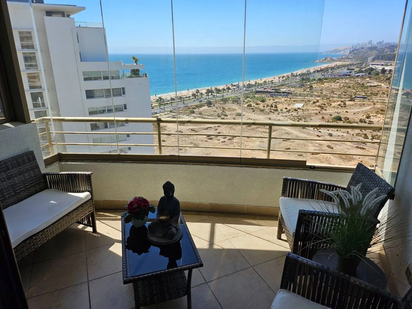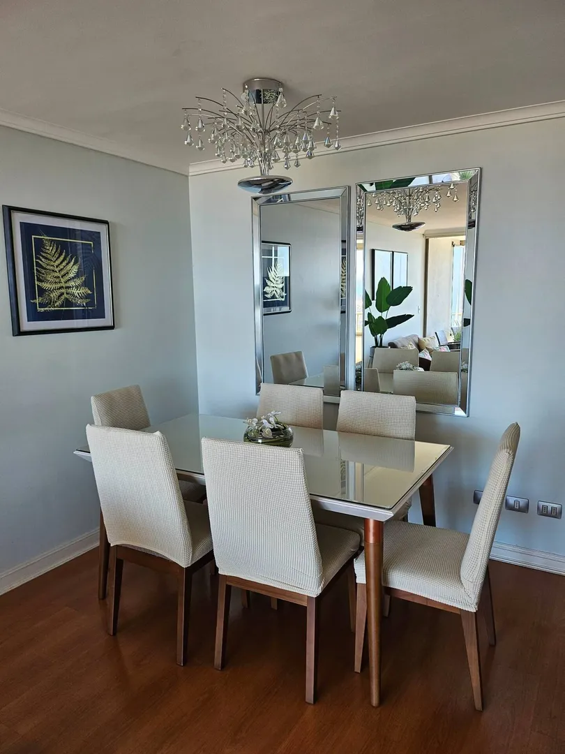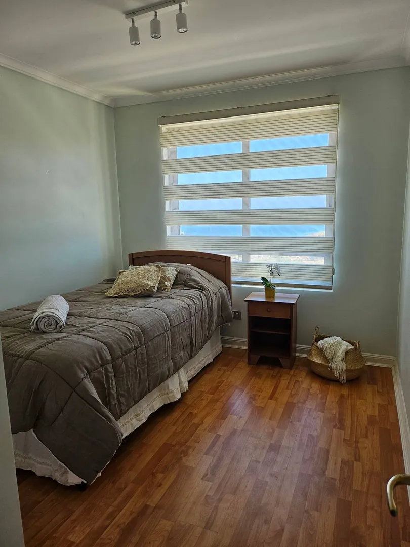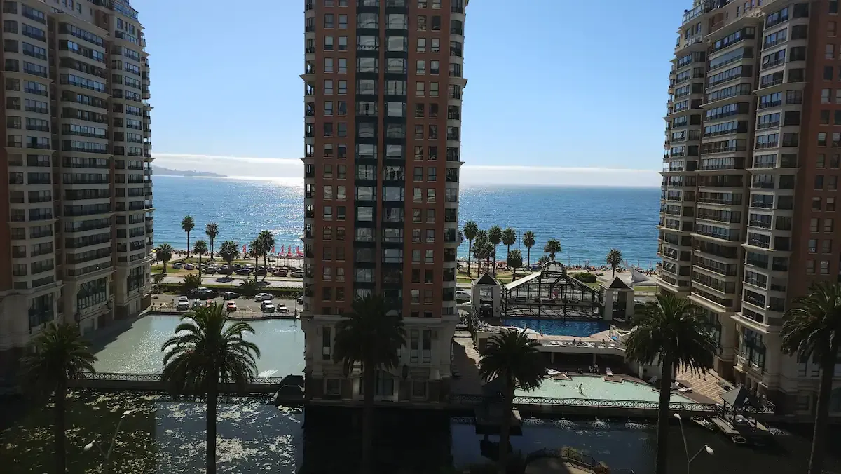 Ce bel appartement avec vue panoramique sur mer propose 2 chambres pour 2 salles de bains. Le bâtiment propose une salle de sport, un terrain de tenis ainsi que 2 piscines intérieurs. Confortable, élégant, à quelques mètres de la plage, du centre commercial, des cliniques, des banques, de toutes sortes de magasins, des cinémas, des supermarchés, des places, des restaurants et bien plus encore dans le meilleur quartier de Viña del Mar. Litteries et serviettes de bains inclus pour toutes les chambres.